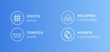 Efecto tensor que reafirma y tonifica la piel para una apariencia más firme.