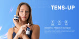 El revolucionario activo TENS-UP crea una película tensora sobre la piel, proporcionando un efecto lifting visible e instantáneo que alisa y redefine la apariencia de brazos, piernas y abdomen. -