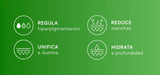 Aclara y reduce visiblemente las manchas del rostro, proporcionando un tono más uniforme. -