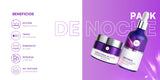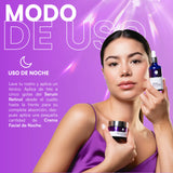 Ideal para una rutina rápida antes de dormir, este pack combina ingredientes potentes que trabajan juntos para regenerar tu piel y combatir los signos de la edad.